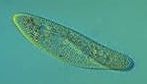Paramecium change direction? All of the cilia have a calcium-activated reverse gear; when a cell bumps into an obstacle, calcium channels open, the cell depolarizes. The voltage normally present across the outer membrane leaks away, as ions rush through open channels to even out the across membrane charges, and the ciliary machinery switch gears, causing the cilia to switch into the opposite motion and the cell backs up fast. Normally not all the cilia are swimming forward during forward swimming; some are moving in reverse mode. When the number of cilia that are swimming forward exceeds the cilia that are in reverse mode, the cell moves forward. When the cell re-establishes cell polarization, the cilia return to their forward movement. This doesn't happen quite smoothly, and when the paramecium resumes its journey, it is usually in a slightly different direction than before - giving the apearance that it has made a detour around the obstacle. What is the significance of this? Galvanotaxis provides a neat model of how our very own nerve cells communicate, via voltage gated channels. Cells are stimulated or not by the voltage gradient across their outer membrane; when they are stimulated, they depolarize, meaning ions like potassium and chloride rush through pores or channels that can open when the voltage exceeds a certain level, i.e. they are "voltage gated"). Nuclei Reproduction Division. In favourable conditions the cell divides in two by a process called binary fission. The nuclei divide, the rear half develops a new gullet, and the front half grows a new anal pore. Then the paramecium breaks into two individuals. This whole process make take place two or three times a day if conditions are right. Conjugation. This is a more complicated method. It involves two cells coming together to exchange nuclear material. Two compatible cells join and part of their cytoplasm fuses. They do not need their big macronucleus and it is slowly destroyed. Their micronucleus goes through a long process where its chromosomes are reduced in number by half (a process called meiosis) and then the post-meiosis nucleus replicates, so each of the mating cells has an extra nucleus. Then, each cell trades the extra nucleus with each other. Now both have a pair of "his and hers" nuclei, which fuse into one, mixing the chromosomes together. Then the one nucleus divides, and the extra one grows into the macronucleus. The two cells then separate and continue to reproduce by simple division. It is similar in some ways to sexual reproduction in more complex animals. Without the rejuvenating effects of conjugation, a paramecium ages and dies. Only opposite mating types, or genetically compatible organisms, can unite in conjugation. Paramecium aurelia has 34 hereditary mating types that form 16 distinct mating groups, or syngens. Autogamy (self-fertilization) is a similar process that occurs in one animal. In cytogamy, another type of self-fertilization, two animals join together but do not undergo nuclear exchange and then reproduce by division. More Information http://www.ruf.rice.edu/~bioslabs/studies/ invertebrates/paramecium.html After all, I guess it doesn't matter whether you look down
