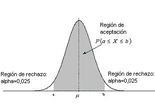 Figura 1. Región de rechazo y aceptación en la distribución normal.