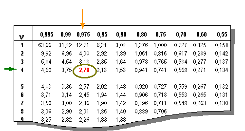 En la 1a columna, se encuentran los grados de libertad, en el cabezal las