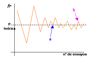 que la diferencia entre la frecuencia relativa observada y la probabilidad