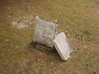 | One of the gates to the cemetery. (The other one was being restored.) I should point out that most of these graves are from the 1800's...so that's why they're in pretty poor shape. This one in the foreground here seems to have been repaired at some time in the past; others that have been broken and repaired have fallen apart again, and can't really be restored. It seems that a good number of the graves are of babies or young children. |