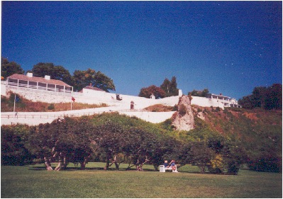 | Fort Mackinac from Marquette Park. (I am having a HELL of a time getting these pages to set up properly!! So you'd better be enjoying this tour!! >:( ) |