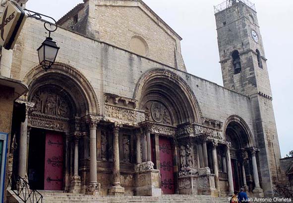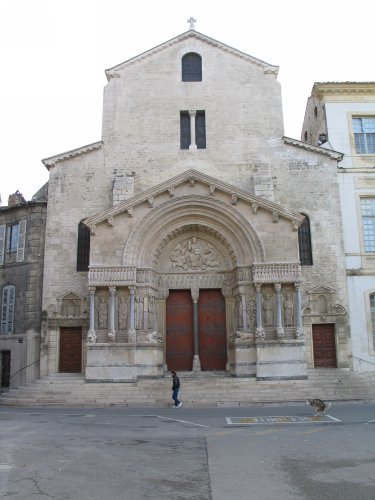 Situada en el centro de la ciudad de Arles, la catedral románica se caracteriza por su magnífica portada dedicada al tema del Juicio Final. El claustro contiguo a la catedral es uno de los más refinados de occidente. Construido entre los siglos XII y XIV, el claustro tiene dos galerías románicas que dan a un patio central y galerías góticas que dan a otro patio.
