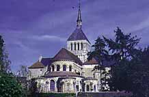 El triforio de las naves se convierte en una galería en la cabecera. Los pilares son compuestos con columnas embebidas y pilastras con acanaladuras de tipo clásico adosadas, que también se daba en Cluny.