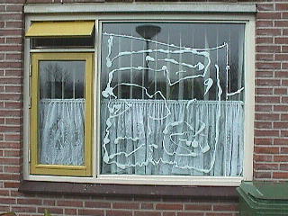 Gedurende het wachten spiedden wij, vanuit onze onverlichte werkkamer, de omgeving van onze woning af. Wij zagen op zeker moment uit het schijtlaantje naast de busbaan twee personen komen, die wonderwel voldeden aan het (vage) signalement dat wij de politie hadden willen verstrekken. Eén van hen had een fiets aan de hand. Aangezien het poepweggetje doorgaans uitsluitend wordt benut door voetgangers die hun hond(je) uitlaten, waren we er redelijk zeker van dat het hier ging om degenen die kort daarvoor een steen door onze dubbele ramen hadden gegooid. Maar ja, wat moet je dan? Zelfs als we de daders of althans één van hen hadden weten aan te houden, dan zou toch de politie niet komen opdagen om de verdachten van ons over te nemen. Want daarvoor zou men, op die drukke avond, `de mankracht' niet hebben gehad. Wij voelden ons op dat moment bijzonder onplezierig en machteloos, dat kunnen wij u wél vertellen. Nadat de twee door ons verdachte personen in de nacht waren verdwenen en wij wachtende waren op de komst van het glasbedrijf, belden wij de verhuurder van onze woning. Wij herinnerden ons namelijk opeens dat er bij de ons periodiek in rekening gebrachte servicekosten ook sprake is van een evenredig deel van een glasverzekeringspremie. Wij spraken een bericht op het voor noodgevallen bedoelde bandje in en wachtten verder op de komst van het glasbedrijf. Kort daarna al belde een dame van de onderhoudsdienst van het woningverhuurbedrijf ons terug en verzocht ons de glasschade te melden bij de glasblazer die eerder de telefoon niet had opgenomen. Tja, zeiden wij, dat glasbedrijf gaf tot drie maal toe geen gehoor en omdat we zo vlak voor Pasen toch een noodvoorziening nodig hadden, hebben we een andere 24-uurs glasdienst gebeld. De dame drukte ons op het hart dat wij die glasdienst geen opdracht tot levering van een nieuw raam en de montage daarvan mochten geven vanwege het contract met hun eigen glasorganisatie. Wij moesten de nota voor de noodvoorziening te zijner tijd maar naar de verhuurder sturen (ter attentie van de opzichter) met vermelding van ons bank- of gironummer. Op dat moment belde de niet-gecontracteerde glaszetter bij ons aan. Nou, die trok ons het vel behoorlijk over de oren, want die wist natuurlijk allang dat onze verhuurder een contract had met een ander glasbedrijf. Het voorrijden en het opplakken van een tijdelijk stuk oud glas kostte volgens zijn opgave driehonderd gulden, maar daarvan zou de helft worden gerestitueerd als zij te zijner tijd het nieuwe dubbele raam mochten leveren. Daarvoor had de glasman natuurlijk nog wel eerst even de maten van het raam nodig. "Heeft u misschien een duimstok?", vroeg hij, de vakman. Die hadden we niet en trouwens, het opmeten door hem zou toch zinloos geweest zijn want onze huisbaas had daar zijn eigen gecontracteerde mannetje voor. Toen het op afrekenen aankwam, bleek dat de kort daarvoor gedane prijsopgave exclusief BTW was. Wij weten niet zeker of de glasman daarmee buiten zijn boekje is gegaan (een prijsopgave aan particulieren moet, dachten wij, altijd inclusief BTW zijn), en we hebben de torenhoge rekening (nou ja, rekening... een vodje papier zonder firmastempel) dan ook met een zuur gezicht voldaan. En nu we weten dat er na het eventueel door ons in de kraag vatten van kleine criminelen geen agenten beschikbaar zijn om ze van ons over te nemen, willen we eigenlijk zo snel mogelijk weg uit Almere. Want te weinig mankracht betekent niet meer en niet minder dat ook grote criminelen in deze gemeente vrij spel hebben. In ieder geval op de donderdag. En wij, als eerzame burgers, altijd maar denken dat Almere een stad is waar niets te beleven valt... Naschrift Wilt u uw ramen schoon en rein? Naschrift (2) Naschrift (3) Al met al konden we pas ruim twee uur nadat we de verdachte open deur bij de politie hadden gemeld, eindelijk verder gaan met onze normale werkzaamheden. Maar de concentratie was weg. En toen onze dochter later die avond thuiskwam en ik haar van die open deur en het wegwerken van inbraaksporen door de politie zelf vertelde, herinnerde ze zich te hebben gezien dat die deur 's morgens al had opengestaan. Dat moet voor de politie toch een interessant gegeven zijn bij hun onderzoek. Maar tot op heden is er niemand die met ons contact heeft opgenomen. |