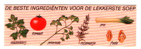 Wat hadden de inventieve soepfiguren bij de dag-en-nacht doorproducerende Honig-fabrieken in Koog aan de zaan namelijk gedaan? Ze hadden soepdoosjes met het opschrift Kippensoep laten drukken en daarin een onbestemd oplospoeder met kipvormige vermicelli gedaan! Echt, we zuigen dit niet uit onze duim -- er drijven in de Honig kippensoep kleine gele kipjes van geel gekleurd tarwemeel, die de consument er tijdens het slurpen voortdurend op attent maken dat hij, ondanks de onbestemde smaak van het gerecht, wel degelijk met kippensoep van doen heeft.