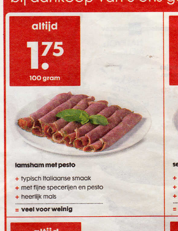 pakjes lamsham in de koelvitrine lagen en (belangrijker) of er