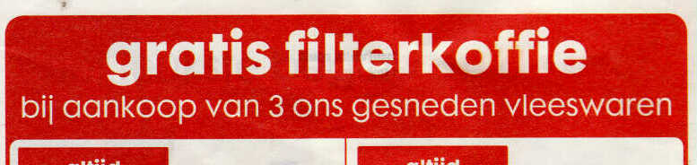 filterkoffie bij aankoop van 3 ons gesneden vleeswaren"