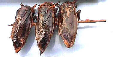 tandmatig bezig waren van korrels te ontdoen. Wij wierpen, om