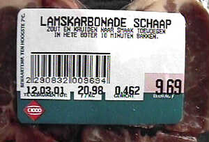 Het blijft aanrommelen met vlees en vleesprodukten. Soms wordt de consument regelrecht om de tuin geleid (zoals door Mora, die haar hamburgers van paardenvlees en kip blijkt te maken) en bij supermarkt-keten C1000 ligt een zeer bijzonder vleesproduct in de schappen, namelijk lamskarbonaden van schaap!