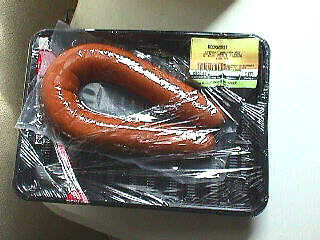 De verpakking bevatte oorspronkelijk twee worsten, waarvan er een