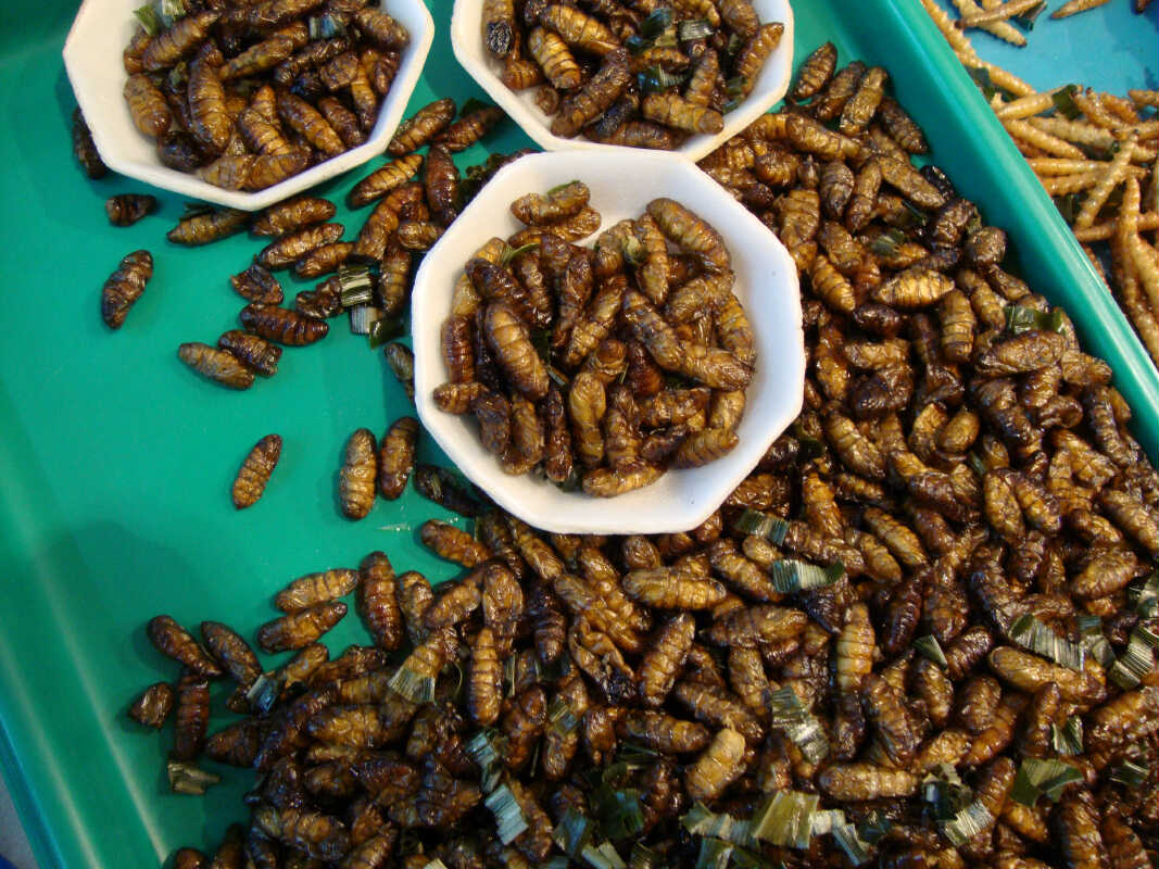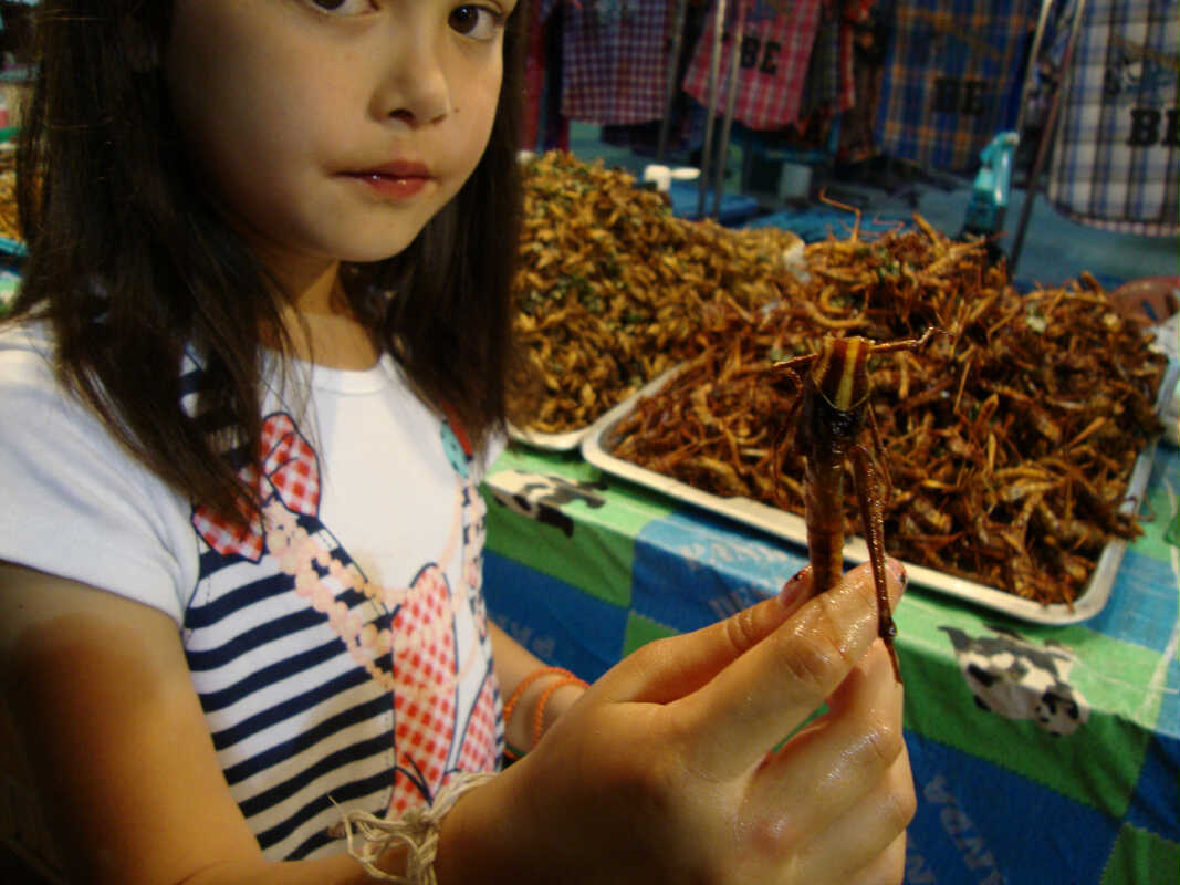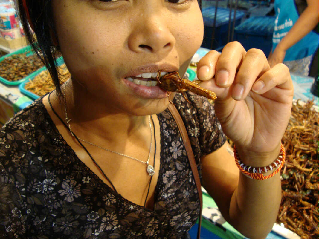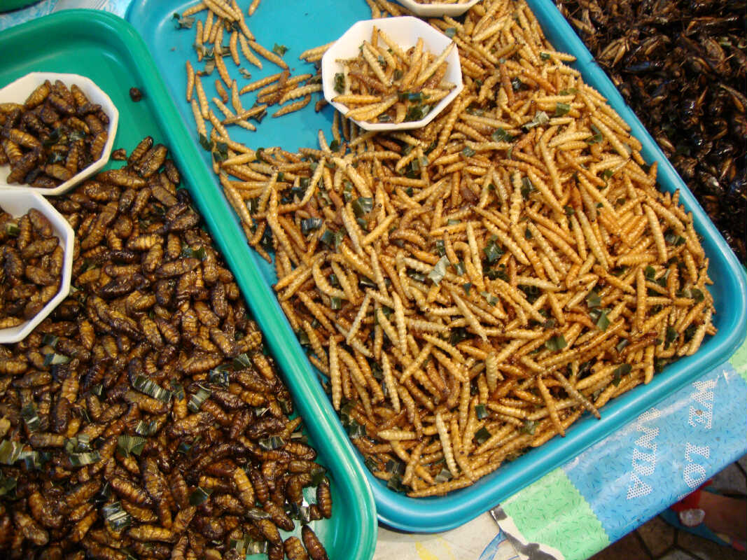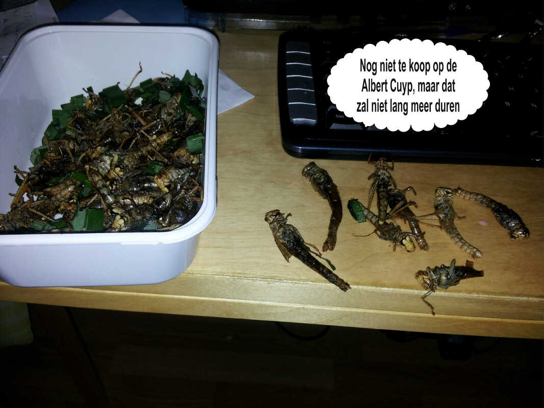 De beestjes op de eerste 6 foto's zijn op een Thais feest in Nederland gekocht, de laatste 7 foto's zijn genomen op de markt in Udon Thani (Thailand)