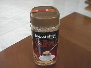 Drink. Noot: De verpakking ziet er exact uit als een pot Nescafe. Het ontwerp werd brutaalweg gepikt van de eigenaar van Nescafe, Nestle. |