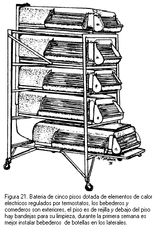 etc.) en el suelo. Las baterías usadas para criar pollitas
