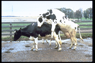 Figura 2. Cuando permanece quieta para ser montada es la señal más confiable para establecer el momento del servicio de una vaca. Una vaca debería servirse a las 12 o 24 horas después de la iniciación de su receptividad en celo.