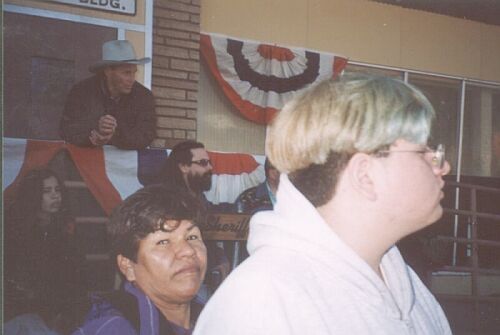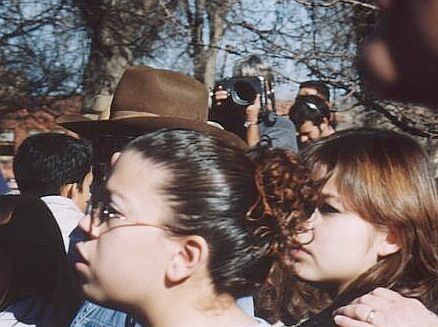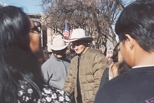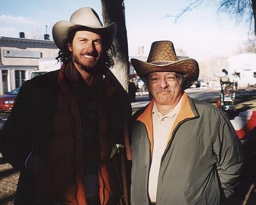 | L-R: Sam Shepard Local actors: J Nathan Simmons (sunglasses) Amalia and Michael Barela |