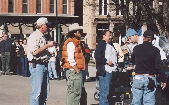 | Director Michael Haussman (vest) with AD John looking over a setup |