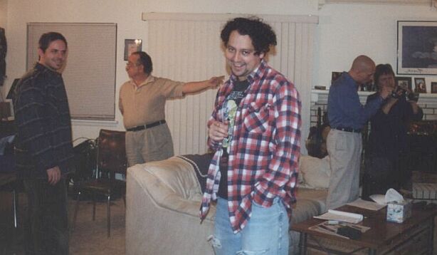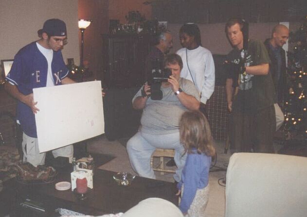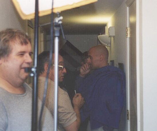 | A brief break between shots L-R: Ken Hardelcopf (sound), Ric (make-up), Carlos Cabarcas (Mark), Andre Anile (Brother), Harriet Levine (Mother) |