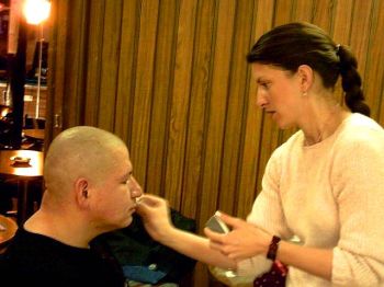 | Makeup artist Angelique Ortiz works on local actor Jaime Yellowtail |