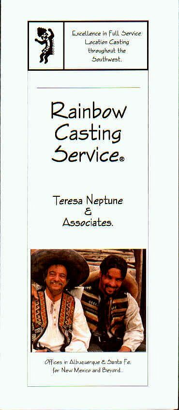| Teresa Neptune is the owner/operator of Rainbow Casting in New Mexico. She provides a highly beneficial service to the film industry and has helped many individuals get work on different projects. Thanx Teresa ! Photo courtesy of Teresa Neptune & Rainbow casting |