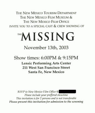 | Ric and Chris Roybal at the special showing of "The Missing" held in Santa Fe 13 Nov 2003 |