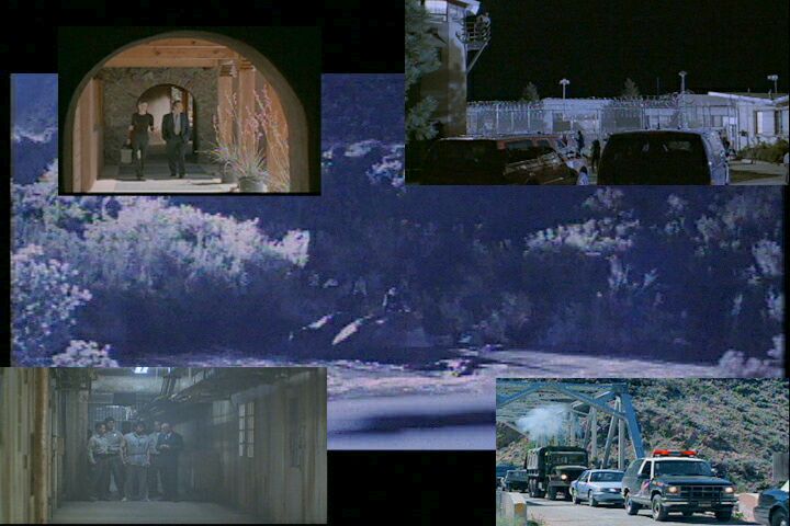| A montage of photos from the film at the prison and in Pilar, NM It is difficult to discern people in the river photo but Pavan Grover is the figure sitting on the big rock at the river's edge with the assorted illegals behind him. |
