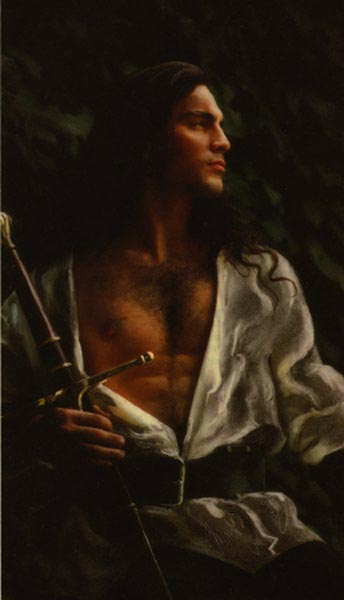 ![]() ISBN# 1-885478-65-8 PASSION'S BLOOD is a moving story of love, desire, and betrayal. Lady Leanna is the flame haired beauty loved by her betrothed, Prince Emric, and desired by his loathsome brother, Prince Bran. In love with the noble and courageous Prince Emric, she has yet to make peace with the knowledge that this arrangement was forced upon her. In the midst of a war and the dark treachery of Prince Bran, the young lovers must hold to their faith. And when Prince Emric is mortally wounded, Leanna must keep him alive with her love and the magical powers she herself does not fully understand. PASSION'S BLOOD is a unique, first of its kind novella. With its thirty-four enchanting and sensual illustrations, PASSION'S BLOOD is a spellbinding erotic, medieval fairy tale. PASSION'S BLOOD marks a new chapter in romantic fiction - and we eagerly await the books that follow. ![]() Since the day he made his romance cover debut on Marsha Canham's THE PRIDE OF LIONS, Cherif has fueled our imaginations and captured our hearts. He is everything that a romantic hero should be. Now we discover just how truly talented this man really is. He is an expert on horseback. He can engage in battle with a jousting lance or go hand-to-hand combat with a sword. He is a dedicated single father. He is both model and artist. And now he is also the author. Welcome, Cherif, to RBL Romantica. ![]() Donna: Cherif, please tell us a little about yourself: where you live, your background, family, work, play ... what you do when you aren't writing. Cherif: Well, let's see ... I was born in Montreal, Canada twenty-nine years ago. My family and I immigrated to the United States in 1979 and took up residence in Chicago, where I have lived ever since. As odd as it sounds, my professional background is in stunt performing and art. Since 1991, I've worked for a company called Medieval Times doing a variety of stunts and equestrian acts. Six years ago, I started an art studio with my partner Lynn Sanders, where we do everything from book cover illustration to murals to fine art. Though I still do the knight thing on a part-time basis, I'm happy to say it's been eclipsed by the success of our studio. I have a four-year-old daughter who occupies most of my free time, but when we're not together, I enjoy bare-knuckle kickboxing, snowboarding, and my latest love, scuba diving. When I'm not writing, I'd have to say I'm painting - I really enjoy anything that allows me to be creative. Donna: Is your family supportive of your career? Cherif: Sure. They've seen all the hard work and dedication it's taken just to get this far, so I like to think they're proud of me! Donna: How did you get started as a cover model? Cherif: Well, to be absolutely honest, modeling was never something I set out to get into. It was more or less something that developed pleasantly enough out of our business of doing cover illustrations for the various publishers in New York. After all, I had the long hair from my working at Medieval Times- why not save a little money by having me in front of the camera as well? I've really learned to enjoy it, however, and now I see it as a great way to practice acting and drama. As far as getting started with illustrating romance novels, I would say the credit has to go to Marsha Canham for supplying us with our first break. She saw some of our art and threatened everyone she could at Dell to put our illustrations on her books. When Virginia Henley did the same, that pretty well established us. We lucked out big time by having those two ladies in our corner. Thanks again, guys! Donna: Which one is your favorite cover?
