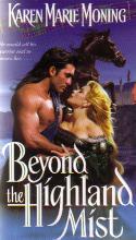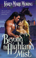 ![]() Many of us have enjoyed reading and discussing BEYOND THE HIGHLAND MIST, a time travel romance by new author Karen Moning. Now meet Karen herself! ![]() Aislinn: Karen, we would like to know a little about you as a person. Would you care to share with us some information about your background, where you live, your marital status, and children, if any? Karen: Marital status, hmm. I�ve always found it curious that �marital� (conjugal) and �martial� (inclined or disposed to war) differ only by the strategic placement of two letters. "BG" I live in Cincinnati, Ohio with the goddess-empress Moonshadow, the cat who rules the earth, or suffers the elevated opinion that she does. Not married, I used to be. Was wed for two years to a much younger, dark and sexy Italian. (Ah, now the opening comment makes sense.) At present, my ex and I live next to each other and get along wonderfully. No children, which is probably why the cat rules. Background: I grew up on a three hundred acre farm in the heart of God�s country, which means when we moved out there the phone lines ended a half mile away, on each side of our property. I�m only 34, so it wasn�t that long ago. I�d never seen a dirt road before (lived in Cincinnati til I was five). Way out, down the kind of winding, miles-long, one-lane dirt road that makes the infrequent guests I�ve taken out there clutch their chest and gasp, "What happens if a car comes towards us?" "Swerve and pray", I tell �em. And add a plea that it�s not a member of my own family coming towards us because they drive like they own the road. I attribute my imagination to the intense solitude of growing up in such an isolated environment; the nearest neighbor was miles away. A debate with cows or geese, while flattering to the ego, lost its thrall after a while, and if my parents saw me they put me to work. Definitely cause to avoid the homestead. We raised tobacco, and yes, I hoed it, staked it, stripped it and plucked the nasty green worms off it. Standing in the middle of an endless field of plants that are only going to grow bigger and make more work for you (talk about an incentive to mutilate a few of those defenseless green sprouts), with a hoe in 100 degree weather would have been intolerable if not for the Vikings (insert here any hunky man) hoeing along side me. Oh, a mirage? A figment of intense heat, sweat, and extreme ennui? I�ll buy that, but it passed the time. And now they saunter, sweaty and muscle-bound, into their own stories as if we�re old friends.