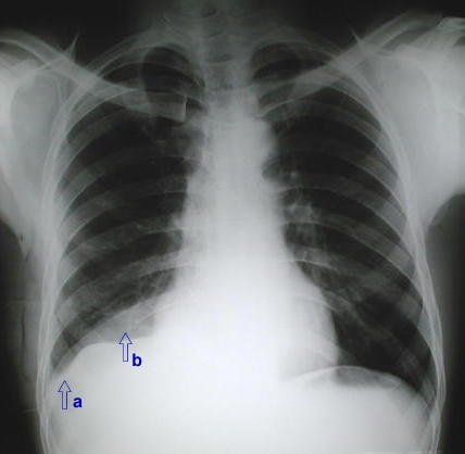 que borra tenuemente la linea diafragmática derecha en el seno costofrénico