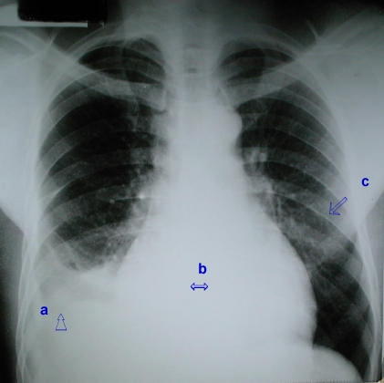 Aumento del diametro trasverso de la silueta cardíaca con aspecto