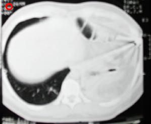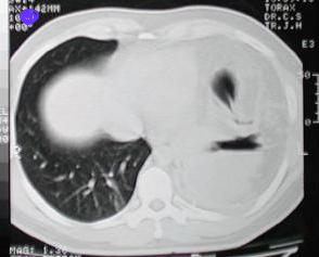 interpretado como absceso pulmonar, fue hospitalizado y tratado