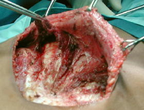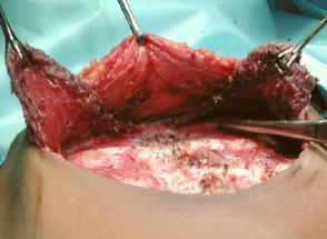 liberación completa del esternón y resección del sifoides