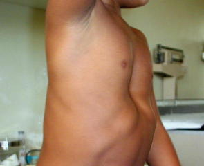 musculatura pectoral, con el consiguiente aspecto físico asténico