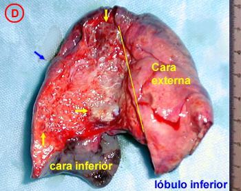 el tejido pulmonar sano y en casos muy severos anasarca por probable compresión