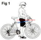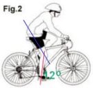 Parece sobre su bicicleta con los pies en el suelo, debe existir aproximadamente 5 cm entre el tubo superior y su horquilla púbica. (Fig. 1) . La altura del asiento. tan alto como el eje de su pierna tenga unos 12 Grados de ángulo con el eje mayor de su fémur (Fig. 2) Para descensos y ascensos en montañas el asiento debe colocarse mucho mas bajo. La altura del la barra de dirección unos tres cm mas bajo que el asiento. el asiento nivelado con el suelo o algo inclinado hacia atrás disminuye el peso sobre sus brazos y hombros. |