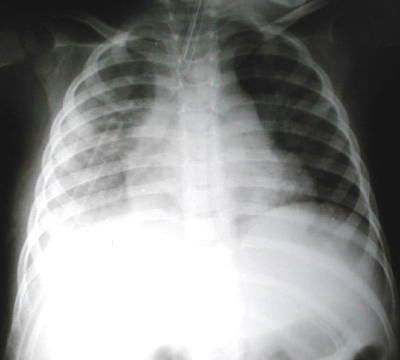 zonas de atelectasias consecuencia de su retención de aire, infección