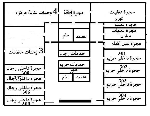 جناح عمليات ( 2 غرفة عمليات - حجرة إفاقة - حجرة تعقيم ) جناح عناية مركزة مركز تجميع وحفظ دم 3 وحدات حضانات قسم داخلى حريمى ( 4 حجرات ) قسم داخلى رجالى ( 4 حجرات )