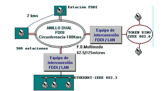 FDDI: El Interfaz de Datos Distribuida por Fibra (FDDI) es una red de