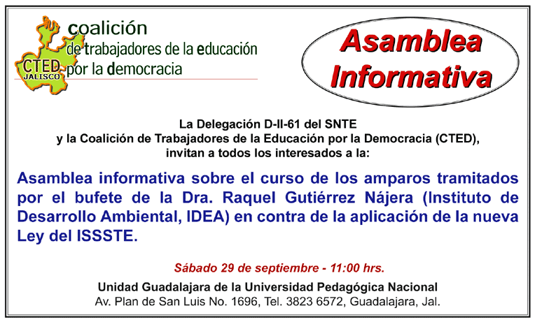 informes: Tel. 01