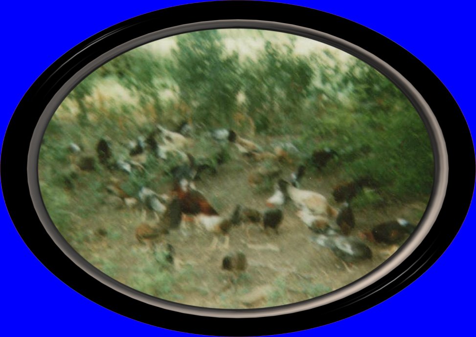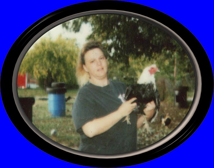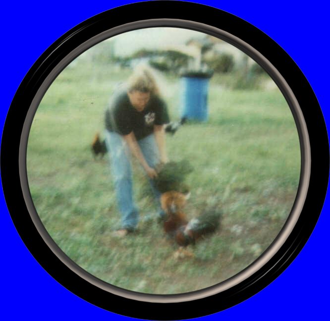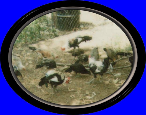 LAURA PLAYING IN THE ROOSTER YARD