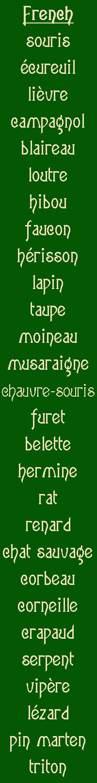 | *Note - I'm not totally sure on the translations of "vole" and "pine marten" as I got them from Babelfish, and sometimes that translates oddly.* |