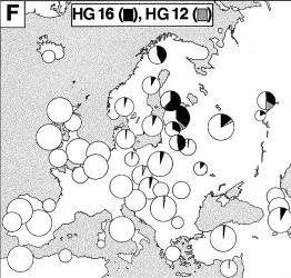 | HG16 is found at high frequency in the North, East of the Baltic Sea. With the exception of the Hungarians, all Uralic-speaking populations tested (Finnish, Estonians, Saami, and Mari) show a high frequency of HG16. | ||||||||||||||||||||||||||||||||||||||||||||||||||||||||||||||||||||||||||||||