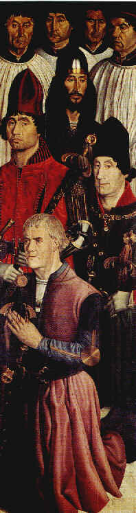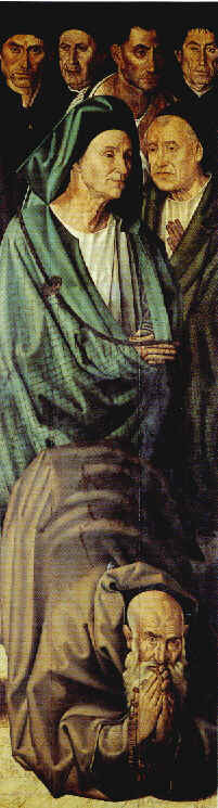 | I was lucky enough to find such a detailed image of this particularly beautiful panel. On the centre of this panel we can observe St. Vincent, the patron saint of Lisbon, holding the book of the Gospels (St. John's gospel), addressing a kneeling man that is recognised by scholars as the portuguese king D. Afonso V. This panel can be seen as the oath of the royal family. Wearing a black hat (with some pending cloth), standing in a position of prayer, one can see Prince Henry the Navigator. Prince Henry, man of a somewhat dark skin complexion, was obviously an individual of Mediterranean stock. Prince Henry was half English, but not even that was enough to reduce his obvious Iberian looks. On this panel, representative of the royal family and the higher nobility, not even one single individual is of Nordic racial stock. There are 3 or 4 Iberian Alpines and the rest are mostly Iberian Mediterraneans. It should also be noted that only three individuals (including the saint) have a pale skin complexion. That is not an oddity in modern Portugal. Many individuals are relatively pale skinned, both in the north and in the extreme south. |