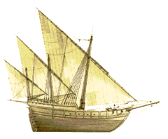 | To sail to India, the Portuguese started using another type of ship: the nau. A nau was similar to the Spanish galleon. Here is the nau S. Gabriel, where Vasco da Gama sailed. | |||||||||||||||||||||||||||||||||||||||||||||||||||||||||||||||||||||||
