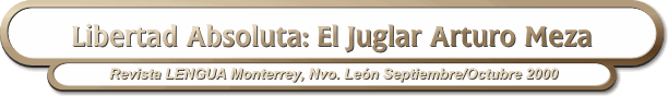 Desde hace 12 a�os, al ritual acuden los �ltimos anarquistas, automarginales, extravagantes, radicales heroicos. De variad�sima condici�n y edades, igual y se conmueven m�s que las viejitas del Club del Tango...A esa horda de idealistas gritones que siguen fielmente en cada tocada a Arturo Meza, que quieren y exigen un mundo mejor, les puede interesar esta Summa teor�tica del juglar sabio y loco.