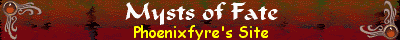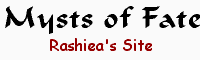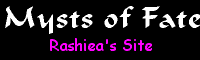 If you would like to link this site to your own, please save one of the banners below to your own files. Thank you! I do have two different pen names I use online, "Rashiea" and "Phoenixfyre." If you happen to know me by one of these names, some of the banners do have them attached, others only have the site title. Enjoy!
