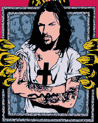 | Food Records impresario David Balfe discovered Zodiac Mindwarp (aka Mark Manning), a leather-clad Hells Angel, whilst the latter had been stalking the Spar supermarket near his girlfriend's house. On hearing Zodiac's demo with it's T-Rex riffs and early hip hop beats, Balfe signed his band, who became the labels main act during 1985. Lacking in resources, they lost the band to a major label soon after (although Balfe remained as the band's manager). If you believe that you'll believe anything! Manning was actually a writer for Sounds music magazine (in the 80's there were three weekly U.K. mags; the NME, the Melody Maker, and Sounds) and became a rock god of his own making in the late '80's, with Food releasing his acclaimed E.P. 'High Priest of Love' in 1986, and his major label debut 'Prime Mover' hitting the charts in 1987. The Love Reaction's solitary album briefly set the music world aflame with a dirty, grinding mixture of AC/DC, Hanoi Rocks, Motorhead, and the punky but not so precious attitude of the Damned. Top of the Pops appearances soon arrived, and then departed as quickly as they came when follow-up singles 'Backseat Education' and 'Planet Girl' saw diminishing chart positions in comparison to to their early success. Maybe wisely, Manning suspended his musical activity in 1988, but returned in 1991 with new material and a U.S. tour supporting Guns n' Roses. The music was again suspended in 1994, although the Love Reaction have again reconvened for new releases in 2002. In between, Manning continued his career as a writer, with books such as 'Get Your Cock Out' (2000) being described as 'a romance' (?), in addition to work as a cartoon artist and the occasional journal of his years as a touring and recording musician. To this end, an autobiography entitled 'Fucked By Rock' was released in 2000, with early copies featuring a CD of new material by the Love Reaction. A new full-length album is planned for release in late 2002. IF YOU LIKE THESE, YOU'LL LIKE ZODIAC MINDWARP & THE LOVE REACTION: Crazyhead, Judas Priest, The Cult, Van Halen, Marc Bolan & T.Rex, AC/DC, the KLF, Motorhead, Gaye Bykers on Acid, Alice Cooper, Guns N' Roses, Hanoi Rocks. |