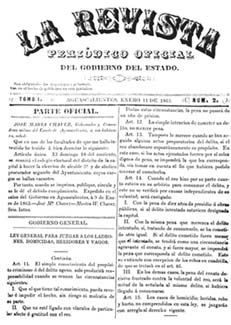2 Enrique Rodríguez Varela, Un paréntesis: el bandolerismo, en Aguascalientes en la Historia 1786-1920, México, Gobierno del Estado de Aguascalientes-Instituto de Investigaciones Dr. José María Luis Mora, tomo 1 volumen 1, 1988, pp. 207-208.