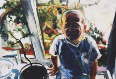 stropind totul in jur. La un moment dat se opreste si face semn unui baietel cu parul cret si blond, acesta vine incet si observ cum il aseaza pe o piatra mare din dig apoi incepe sa-l picteze. Stau pe cearceaf si ma uit la ei, as vrea sa ma ridic sa vad ce face pictorul dar ma gandesc ca e mai bine sa nu-l deranjez, incerc sa citesc din cartea pe care o am la mine dar ochii imi fug mereu spre pictor. Nu mai am rabdare asta e clar, sa ma duc sa nu ma duc....ma ridic fac cativa pasi spre el apoi deodata ma intorc si intru in apa. Nu-l pot inca deranja. nu am curaj, inot cu furie cat mai in larg apoi obosita ma intorc inapoi si ma asez pe cearceaf dar cu ochii tot la pictor sunt. Incerc sa-mi imaginez cam cum ar picta, vad baietelul dragals cu zambetul lui suav iar in spate marea cu valurile ei inspumate, pescarusii in zborul lor ciudat, vapoarele din larg si cerul, cerul de un albastru superb. Mi se face o sete cumplita asa ca ma ridic si ma duc sa-mi iau un suc, nu-l beau acolo ci ma intorc la locul meu, incerc sa beau dar privirea imi este parca blocata pe sevaletul pictorului. |