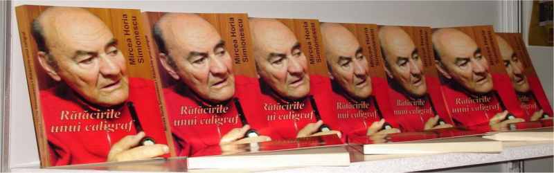 | Editura Bibliotheca din Targoviste a lansat volumul "Ratacirile unui caligraf", semnat de Mircea Horia Simionescu in dialog cu Mihai Stan, in colectia de istorie literara.[ www.Bibliotheca.ro.] Editorul, profesorul Mihai Stan, are un proiect amplu care urmareste sa aduca publicului tot ceea ce ilustreaza opera scriitorului, sa recupereze fatzete mai mult sau mai putin cunoscute ale creatiei sale. Mircea Horia Simionescu vine cu farmecul discursului sau, cu placerea jocului. Desene din tinerete pana azi, amintiri, pledoarie pentru un mod de viata. Vom descoperi cateva dintre volutele acestui mare Caligraf! | |||||||||||||||||||||||||||||||||||||||||||||||||||||||||||||||||||||||||||||||||||||||||||||||||||||||||||||||||||||||||||||||||||||||||||||||||||||||||||||||||||||||||||||||||||||||||||||||||||||||||||
